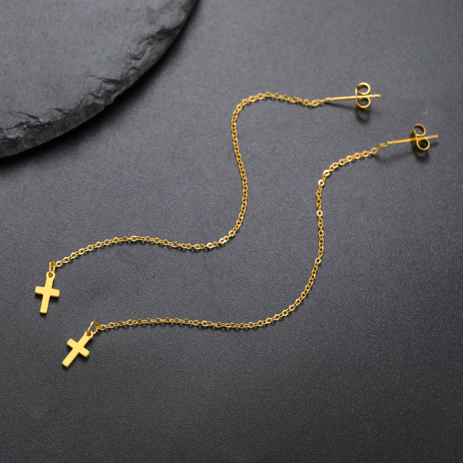 Gold Cross Long Tassel Earrings